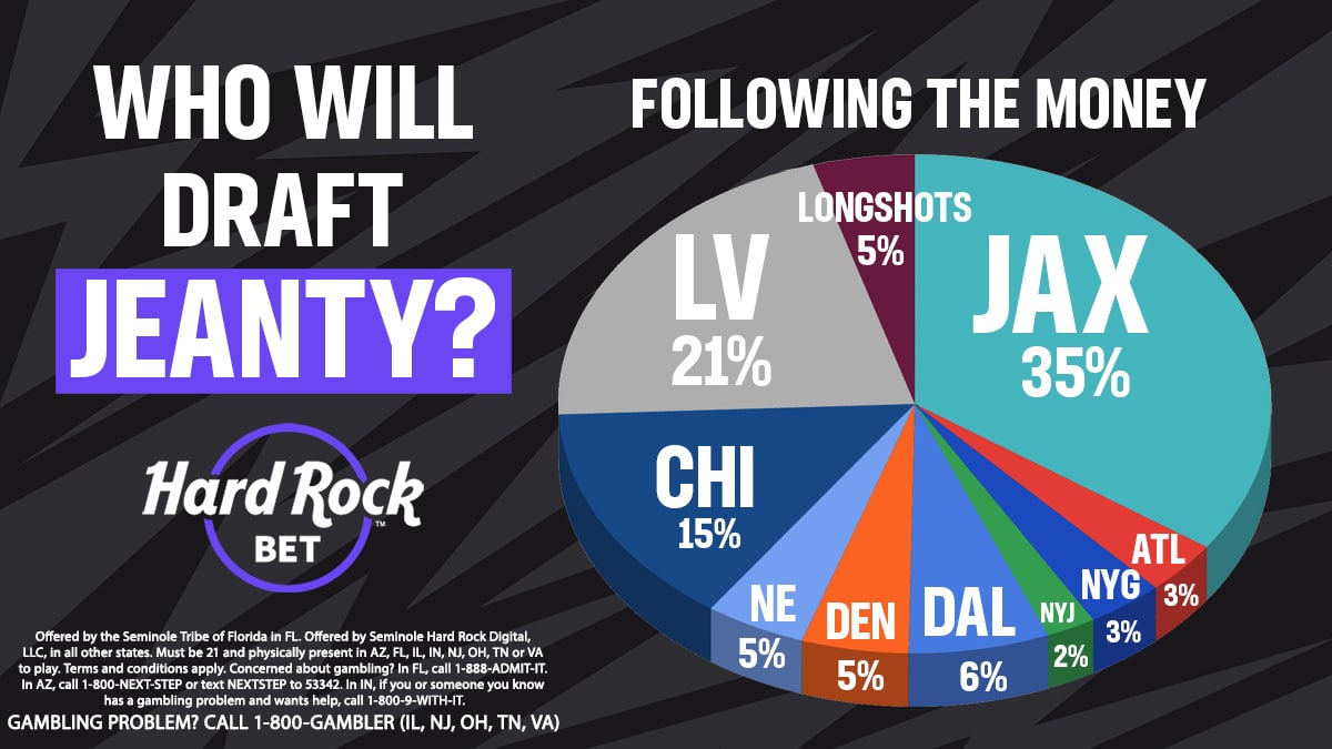 - 35% of the money bet on Jeanty’s future with Hard Rock Bet has been on the Jaguars.
