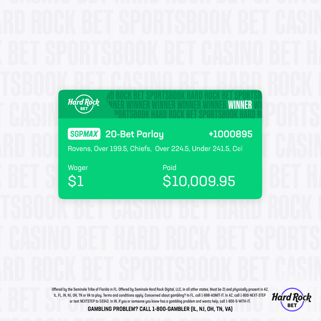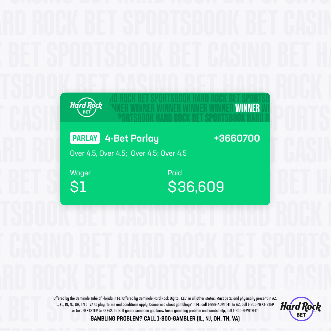 So, what’s the biggest parlay win of the year? Below we’ve compiled a list of the top longshot bets (by odds) that were hit on Hard Rock Bet in 2024.