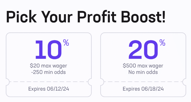 A Profit Boost is a way to boost the payout on your wager. For example, a $100 bet at +100 would return $200 total ($100 stake + $100 profit). If you were to attach a 20% Profit Boost to the same wager it would return $220 ($100 stake + $120 profit). Profit boosts allow you to make the same bets and return more money.